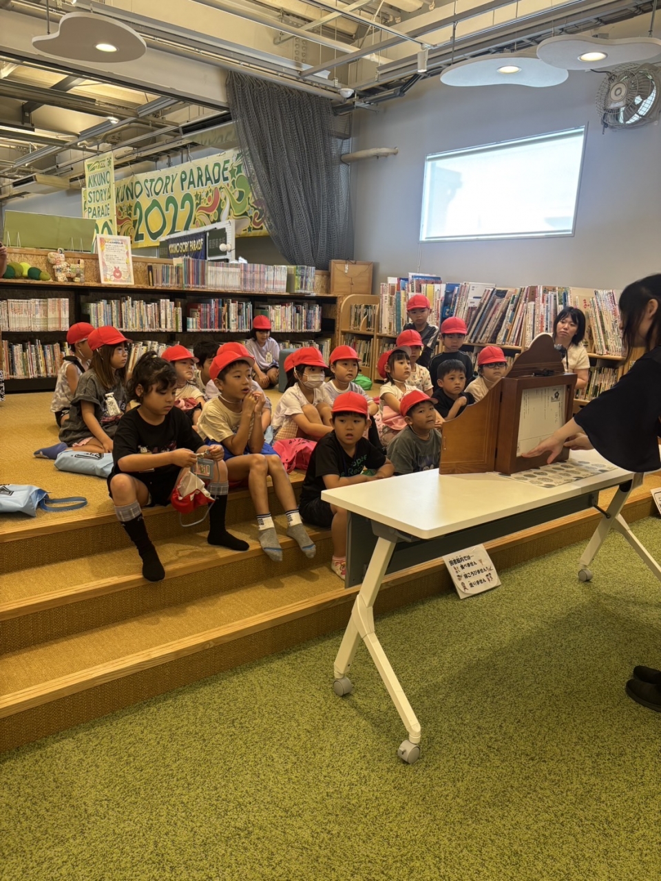 いこっとには何度も来たことがある子も多い中、改めて本の貸し借りの仕方やルールを読み聞かせを交えて説明して下さいました。