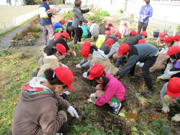 11月12日は、1年生といもほり&1年生のリース作りの手伝いをしました。 1年生はかわいく、5年生は、頼もしく思いました。