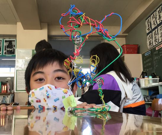 11月14日の運動会では、協力平をかっこよく踊りました。 11月の図工では、針金を使っての「立ち上がれワイヤー」夢中になって針金と・・・おもしろい素敵なオブジェができました。
