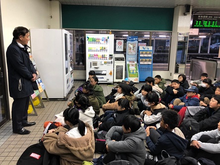 金谷駅から出発!校長先生からお話をいただきました。