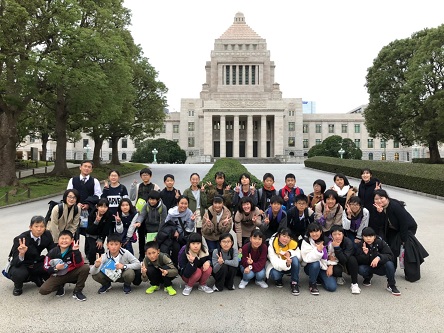 修学旅行の定番、国会議事堂前で「ポーズ!!」