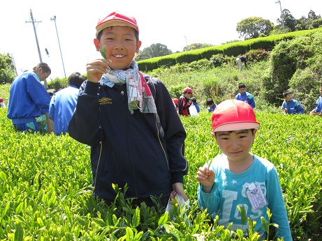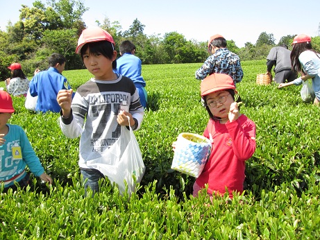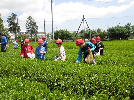 5年生みんなでお茶摘みをしました。