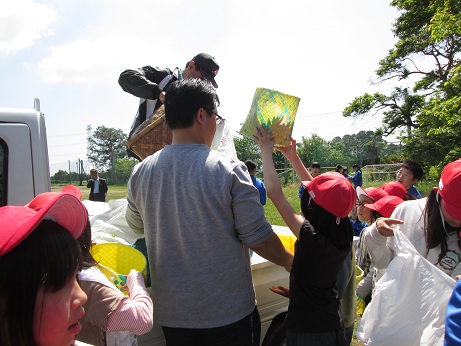 1年生は6年生とペアで摘みました。