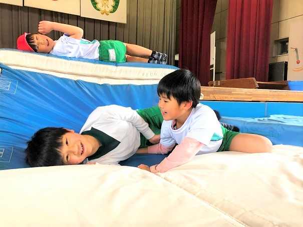 なわとび・かけあし・最後はなかよくマットで遊ぼう。