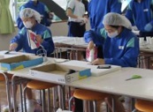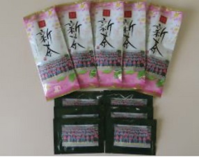 今年も、中学3年生の写真入りの特製袋に袋詰めをしました。去年に比べると、とても茶葉の量が多かったので、みんなのやる気はすごかったです!