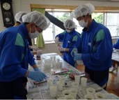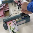 シール貼り・計量・袋入れ・袋とじの工程を分担して、スムーズに作業できていました。