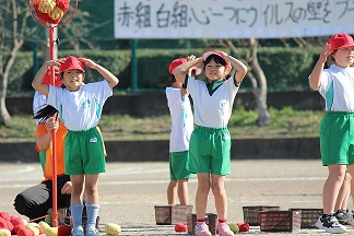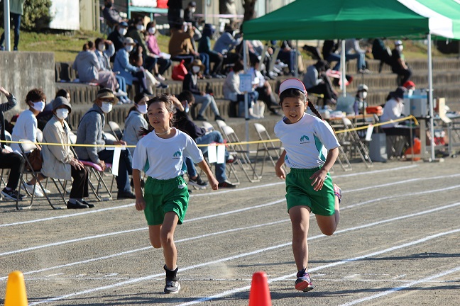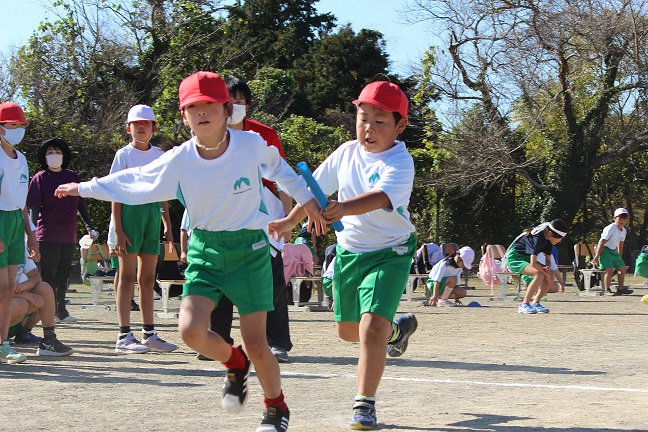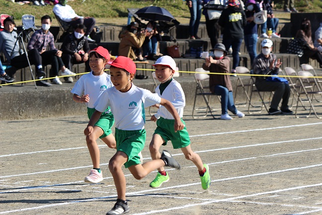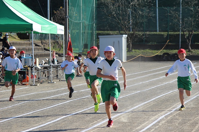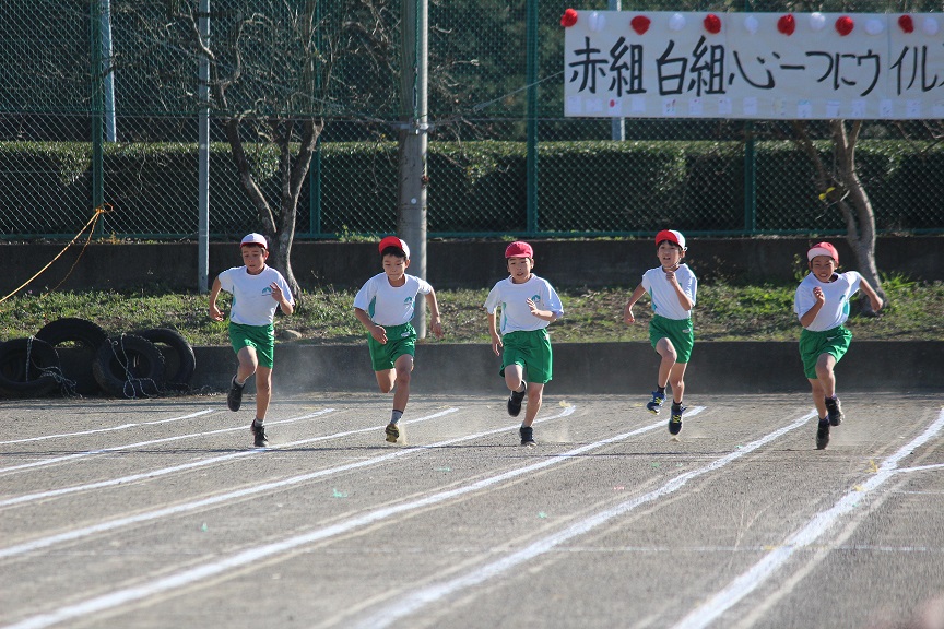 「赤組白組心一つに ウイルスの壁をぶち破れ」のスローガンを掲げ、赤組、白組共に優勝を目指し、一生懸命競技に取り組みました。運動会を終えた子供たちの顔はどこか凜々しく、何かをやり遂げたような顔つきをしていました。1年生も頑張りました。