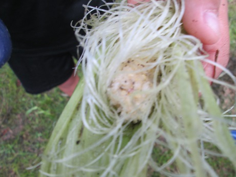 畑にきゅうりやとうもろこしが実ってきたころ。
