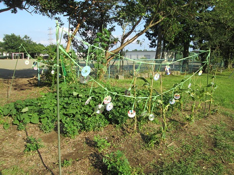 先週みんなで畑につるしてみました。