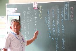 9月27日(木)、なんと、校長先生が道徳の授業をしました。校長先生が授業するなんて、初めてのことです。「バスの中で」という資料を使って、「親切とは、思いやりとは」についてみんなで考えました。みんなでがんばって発表をして、校長先生にほめてもらいました。