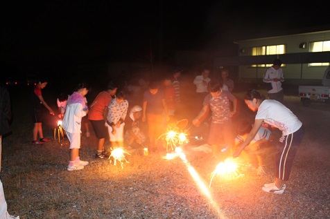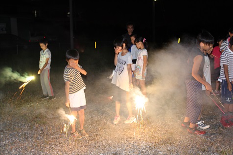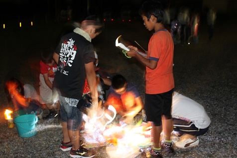 なぞにつつまれたまま、きもだめしは終了。一人も腰をぬかすことなく、 また、連れ去られてしまうことなく無事に花火で楽しみました。 チャレンジ学校の校長先生である河合さんは、いいことは褒め、 いけないことは注意し 感謝することを忘れないようにと常に子供たちに声をかけていました。 地域の方にほんとにほんとに感謝です。 参加した子は、とても楽しい思い出ができたことでしょう。 心配されていた強い雨も登下校中にはなく、無事に終了したことに感謝 ですね。