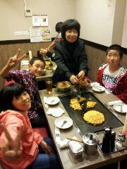 「初めて食べるもんじゃ焼きはどんなもんじゃ。」としゆん君はきっとだじゃれを言ってます。