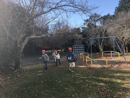めぐみの森はたくさんの落ち葉があって、子どもたちは今日も落ち葉で遊んでいました。
