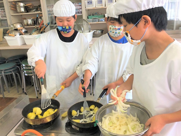 かがやきさんで育てたたまねぎを使ってジャーマンポテトをつくりました。 つくり方はiPadを使って動画で調べたり、インターネットで検索したり・・・ 自分たちでつくり方や材料を調べる勉強もできたね。