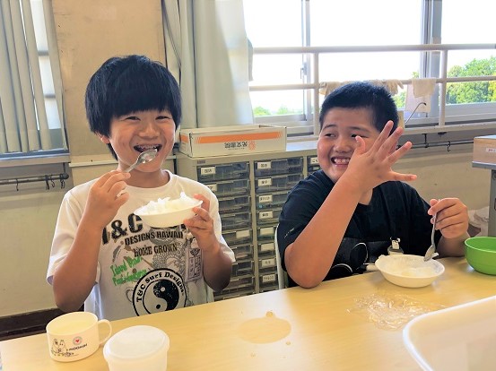 牧中さんからいただいた梅ジュースを使って、梅シロップをつくりました。 梅シロップのかき氷で暑い夏をのりきろう!
