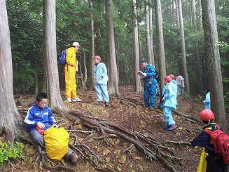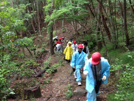 雨に打たれて山頂登山