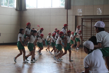 昼休みになると、2人は、原っ子ルームに行って、協力平のソーランの練習をしています。時々、雅樹さんといっしょに教え合って練習しています。お互いに、励まし合ったり、教え合ったりすることで、3人が、ぐんぐん伸びていく様子が分かります。 今日は、5・6年生団体種目の騎馬戦のチームを決め、少し練習しました。亮太さんは、みつきさん、しょうたさん、だいきさんと騎馬を作ります。沙織さんは、山崎みゆさん、きよらさん、6年のあゆかさんと騎馬を組みます。本番の闘いが楽しみです。