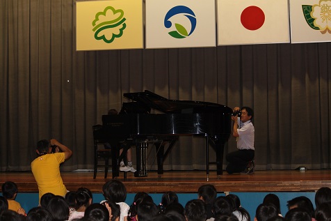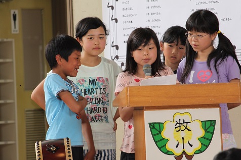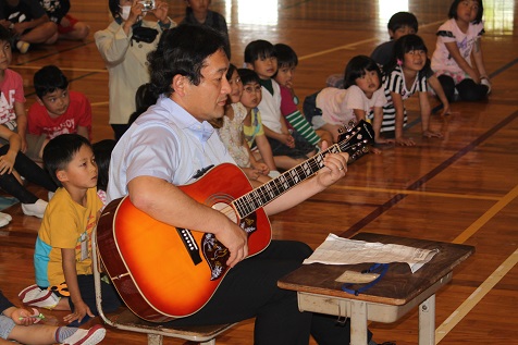 1年生全員の♪さんぽ♪の歌から始まり、6年生感動の♪翼をください♪まで、アンコールは、恒例になりつつある小柳津教頭によるギターでの