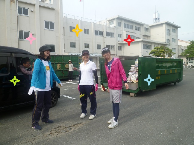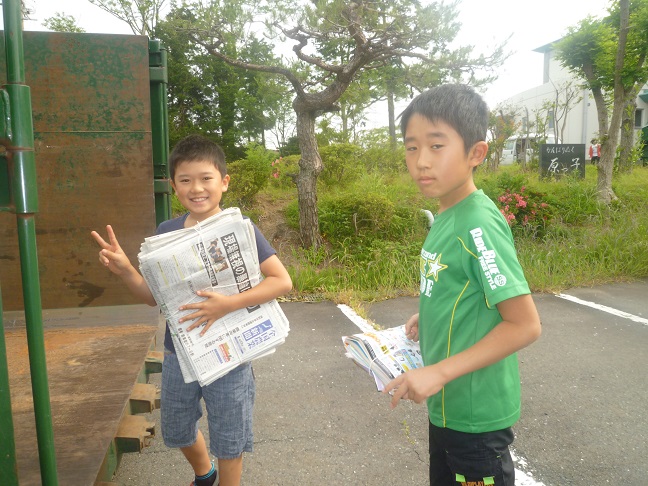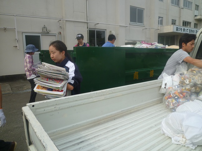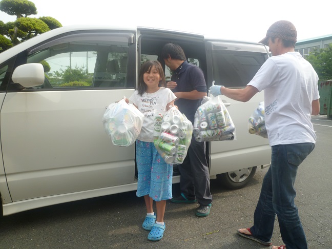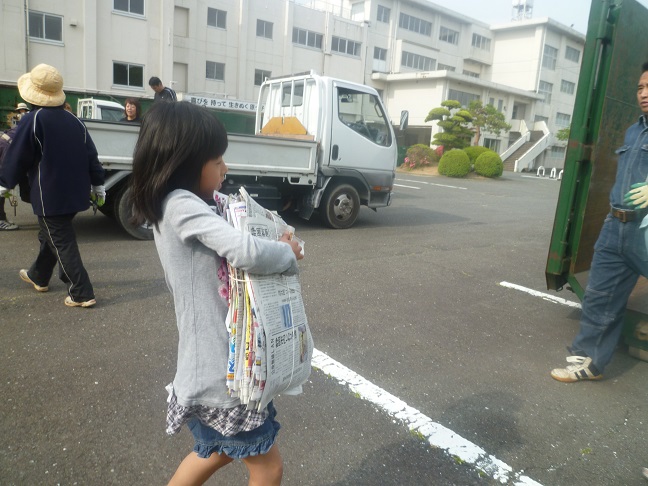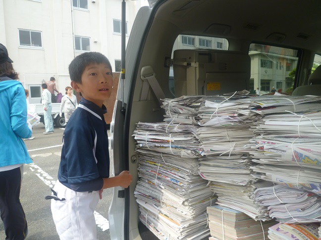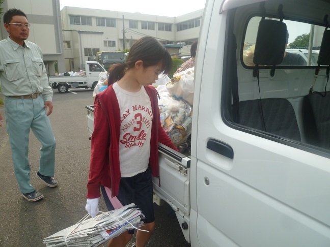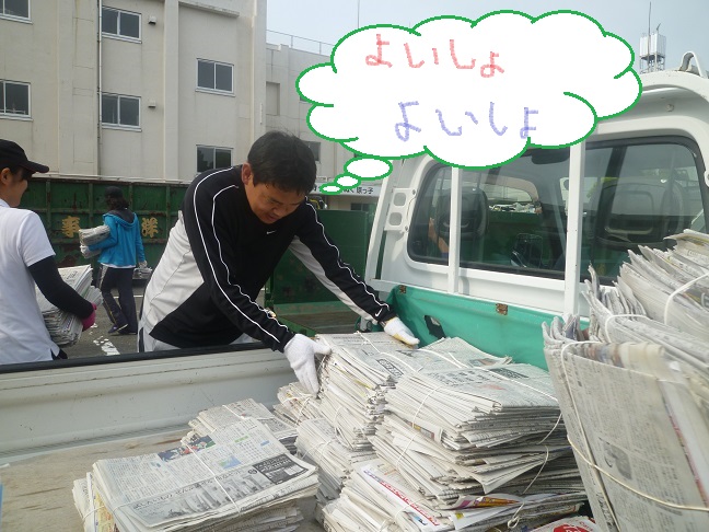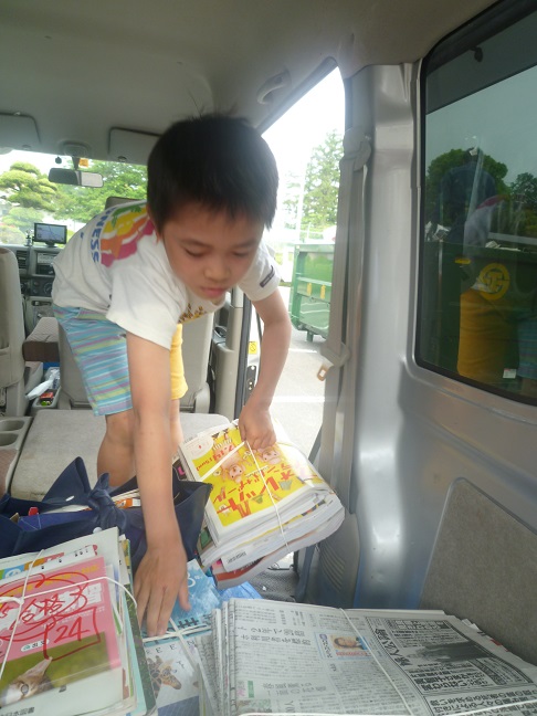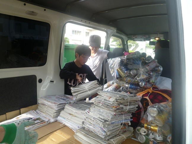 |   | |  | | 日誌 本日はリサイクル活動にご協力いただきまして、大変ありがとうございました。 皆様のご協力により、沢山の新聞紙やアルミ缶が集まりました。 朝早くからリサイクル活動のお手伝いをしてくれた子供たちです。