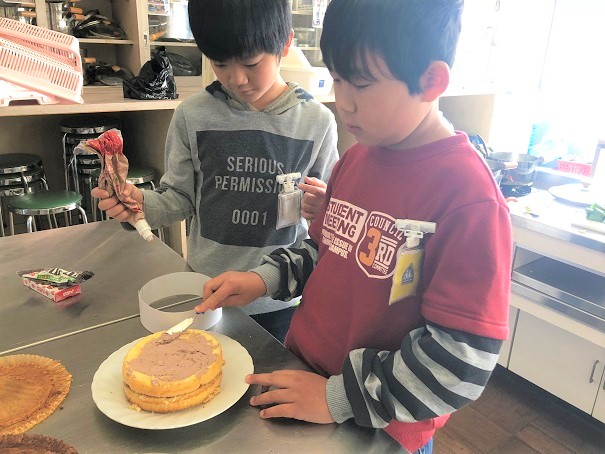 チョコホイップを上手にぬっているね!ケーキ屋さんみたい!