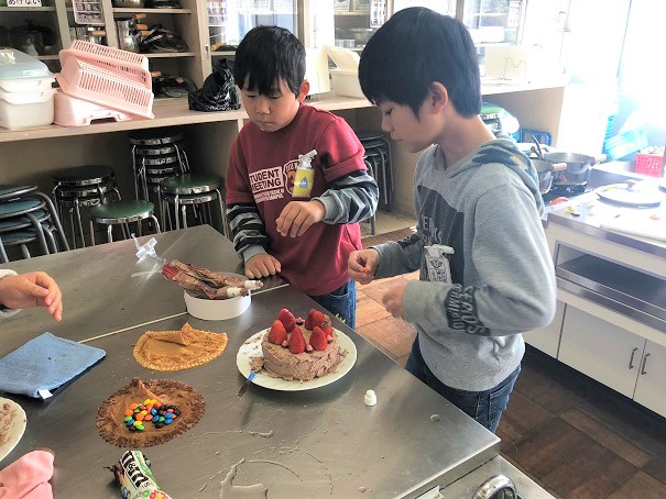 買い物に行った次の日はいよいよパーティーです。 買ってきた材料でケーキを、かがやきの畑で育ててきた野菜を使ってシチューをつくります。