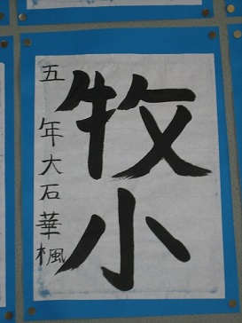 |   | |  | | 学校が始まって1週間が過ぎました。授業も徐々に本格的に始まっています。 学級委員になりたいと希望した子どもが8名いました。すばらしいことだと感激しました。 また、授業も大きな声で話す子どもばかりで、活気があります。給食も毎日完食で、食管が空になっています。すばらしいことが毎日続いて嬉しいです。 習字で好きな言葉を書いたときに、「牧小」と描いた児童がいました。学校を好きだという気持ちを全員が持っていると思いました。