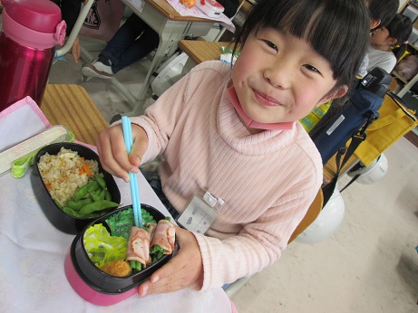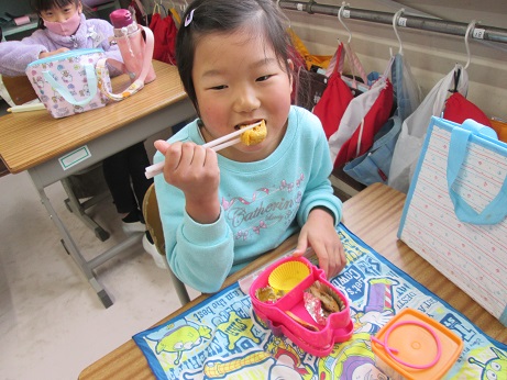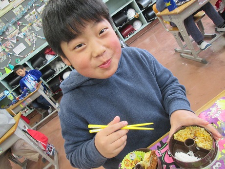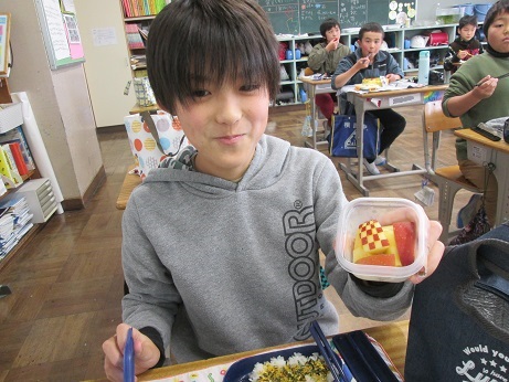 自分でつくってみたよ!と、教えてくれました!すごい!えらい!! そんな私は、ハンバーグ弁当でした。 明日はクリスマスですね!そして、牧小では冬休みをむかえる会があります。 うわさでは、4年のところにサンタがやってくるとか? どんなプレゼントをくれるのかな?4年生、楽しみにしててね!!