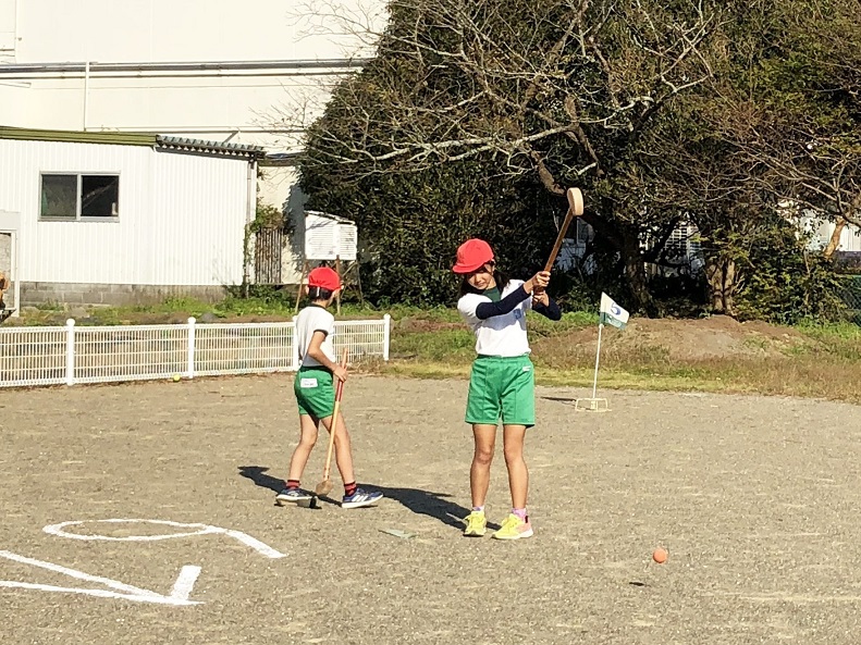 |   | 5年生でも、祖父母の会の皆様とグラウンドゴルフ大会を行いました。