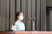 児童代表の6年廣田絢音さんが、6年生でがんばりたいことを3つ話しました。~一つめは委員長としての図書委員会の活動です。牧小の図書館にみんなが来てもらって本が好きになってもらえるようにしたいです。二つめは運動会です。小学校生活最後の運動会では、かっこいいバトンパスを見せたいです。三つめはなかよし班です。1年生のペアが二人できます。日本一楽しい学校にします。~