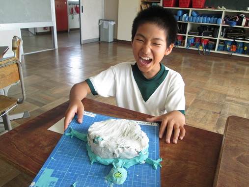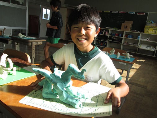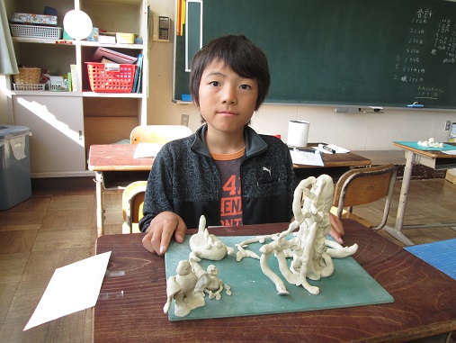 図工の時間に粘土で「不思議な生き物」をテーマに作品を作りました。
