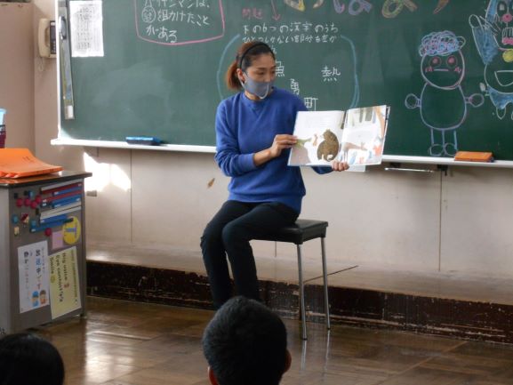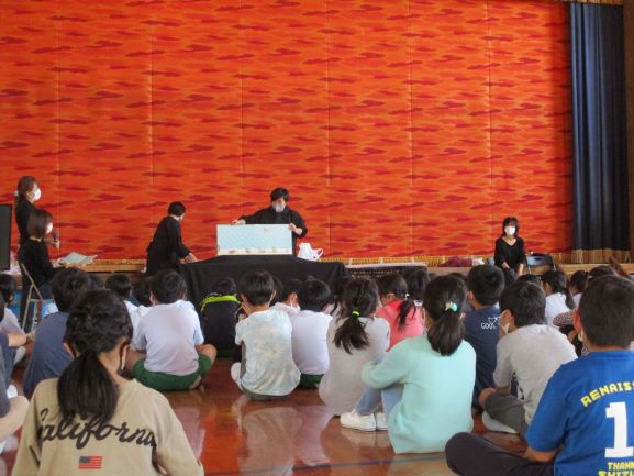 |   | 読書の秋です。 10月27日(火)は、朝の時間に保護者の読み聞かせを行いました。どの子も真剣に話を聞きいっていました。 また、10月29日(木)に保護者ボランティアによるお話会も行いました。5時間目に1・2年生が、6時間目に3・4年生がお話を楽しみました。ブラックシアターの「まっくろネリノ」や大型紙芝居、大型絵本などお話に親しむ楽しいひとときになりました。 |  |