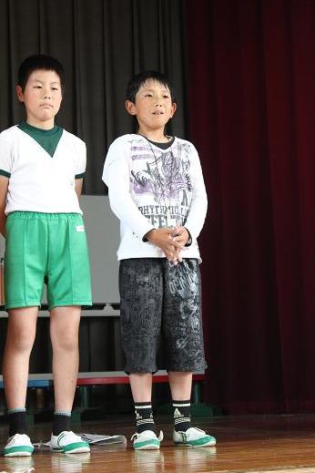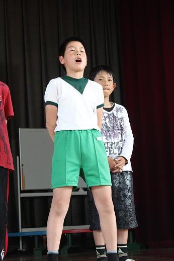 児童集会の中で、今年の運動会応援団長に立候補した6人が、ステージに立ち、みんなの前で決意表明をしました。堂々とした態度に、全校のみんなが感動しました。かっこいい6人の姿、保護者の皆さんに見てほしかったです。