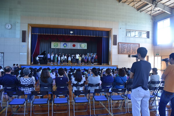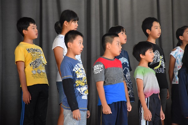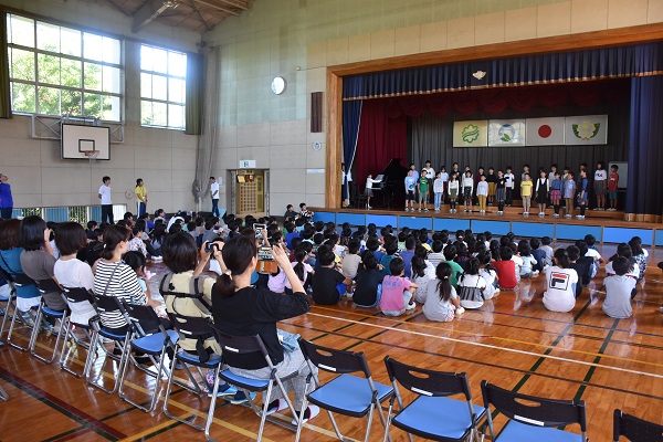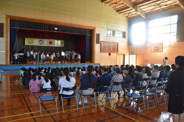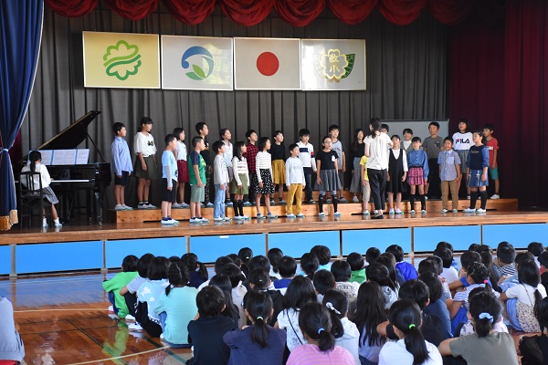 10月3日に、榛原南地域音楽発表会が行われ、4年生が堂々と練習してきた成果を発揮して歌うことができました。それに先立つ1日には、牧之原小学校体育館において、「励ます会」が行われ、全校児童と保護者の前で、合唱を披露しました。