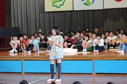司会のけいごさん、はじめの言葉のしょうこさん、おわりの言葉のひまりさん。はきはきとした声、気持ちよかったです。