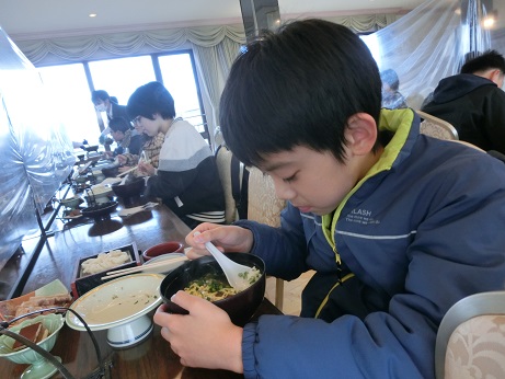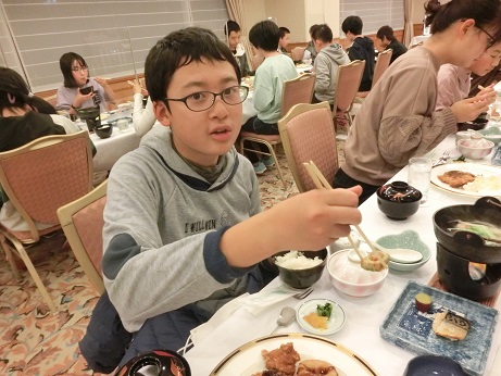 2日目のホテルの夕飯はとんかつでした。この日もおなかいっぱいご飯を食べました。