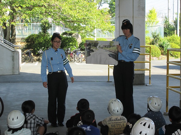 警察署・交通指導員等の御協力で交通安全教室が行われました。