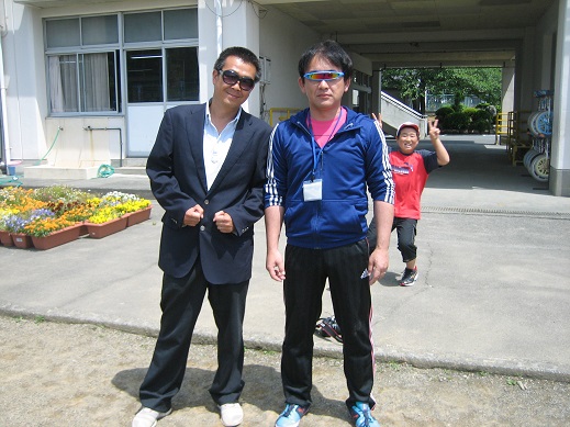 教頭先生は、職員室の戸棚からサングラスを取り出すと 「よかった~。去年の修学旅行で、買ったサングラスが活躍する場面がとうとう来た。」 木下先生は、ふだん、出張に出かけるときよりもびしっと決めたスーツ姿で ハンターになりきっていました。 体育委員会の子どもたちが企画してくれたおけげで、とても楽しい活動ができました。