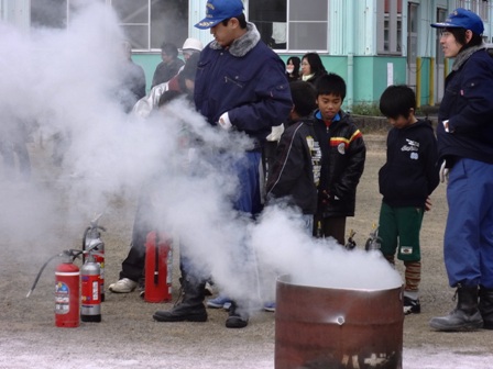 12月2日(日)、「地域防災の日」には、どの地区においても、大勢の参加者のもと、様々な訓練が行われました。小学生の参加状況を確認させていただきながら、いくつかの訓練の様子を見させていただきましたが、どの訓練会場でも、小学生も地域の一員として、積極的に訓練に参加させていただいていました。参加した小学生にも、「自助」「共助」の確認が、できたのではないかと感じました。  |  |