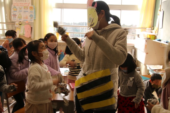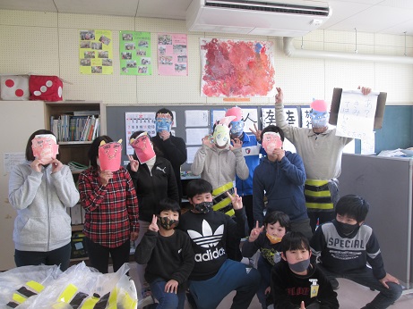 このように、学校いっぱいに「鬼は外!福は内!」の声が響き渡り、学校中に笑顔が広がりました。