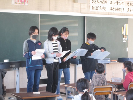 2月10日(水)のドリームタイムに第2回通学区会が行われました。今回は7月の第1回通学区会の時に立てた「1年間の班の目標」をどれだけ達成ですることができたかを話し合い、各通学班ごと振り返りをしました。