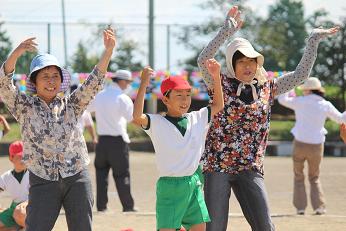 2年生は、1年生と祖父母の方々といっしょに、「チェッコリ玉入れ」を行いました。 「チェッコリ」のリズムにのって、おじいちゃん、おばあちゃんと腰をふりふり踊り、踊りが止まると玉入れ!