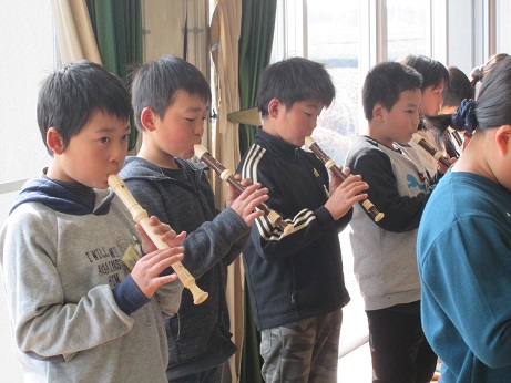 始めに、リコーダー演奏と「花はさく」の歌のプレゼントをしました。