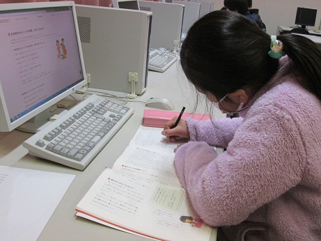 パソコン室でインターネットを使って調べました。
