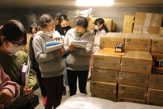 中には、「中学校の先生にも聞いてみたい!」とお願いして、 中学校の防災倉庫を見学させていただいた子もいました。