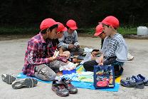 ひととおり山の中を探検したあと、元の広場に戻り、お弁当を食べました。