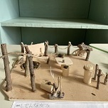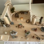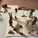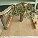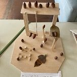 4年生が集めた落ち葉・ドングリなどの木の実・枝などを板を使って工作しました。