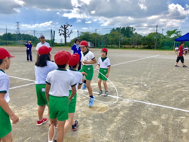 みんなで並んで順番をまっていたら、「あ。ほいくえんのしげこせんせいだよ。」さすが、目ざとい子供たち。3月までお世話になっていた保育園の先生が、1年生の活躍を観に来てくれました。先生が見てくれているんだから、張り切らない訳がない。