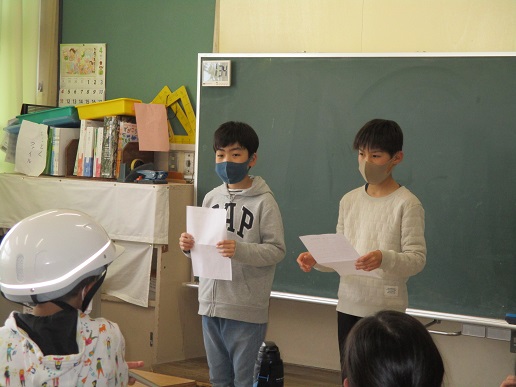 先日、第1回通学区会が行われました。各登校班で集まり登校班長を中心に、今年度の登校時の目標を立てました。 目標の中には「間をあけないで1列に並んで歩く」「安全に登校する」「しゃべらないで登校する」「バスの中で静かにする」「集合時間に遅れないようにする」など様々な目標を立てていました。年度末には、この目標がどれだけ達成できたかの振り返りを行います。多くの登校班が目標を達成できることを願っています。 今年度も子供たちが安全に登下校ができるように、地域の皆様には温かく見守って頂けたらと思います。