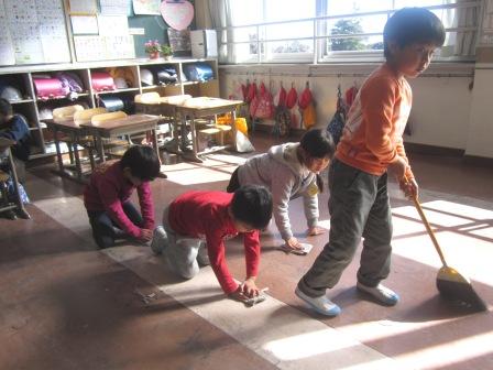 事にあるように、掃除の仕方がとても上手な子どもが見られます。