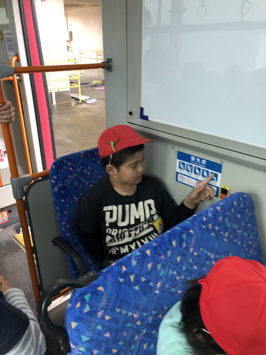 実際に静鉄さんのバスが学校に来てくれたよ!本物のバスで練習ができて、わかりやすいね。